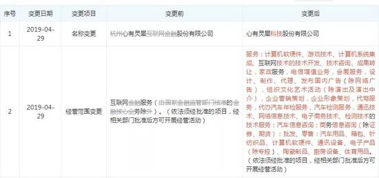 记者注意到,4月29日,即受罚后不久,杭州心有灵犀互联网金融股份有限公司已更名为心有灵犀科技股份有限公司。