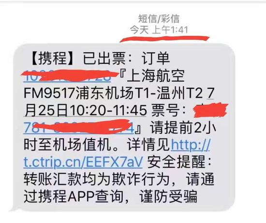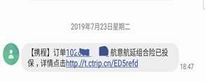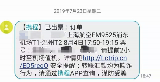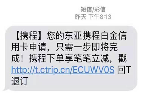订票成功后,记者查看A的手机发现,在应当收到出票及投保信息的时间, A手机上收到的却是携程白金卡的广告。