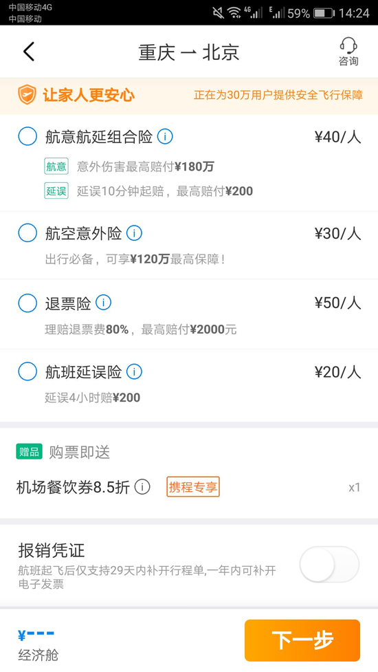再次购买机票 人保产品变太保