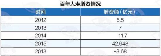 2014年、2015年,百年人寿分别增资11.7亿元、42.648亿元。尤其是在第四次增资中,万达出资7亿元。