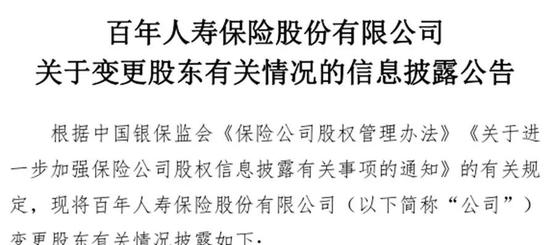 但从监管公开批复文件及百年人寿二季度偿付能力报告显示,此股权变更尚未得到监管的批复通知书。