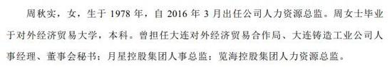 据上海人寿发布的2019年二季度偿付能力报告显示,周秋实是个70后,今年41岁,2016年3月开始担任上海人寿人力资源总监。报告提到,周秋实本科学历,毕业于对外经济贸易大学。此前曾在多个公司担任与人力资源相关的职业。