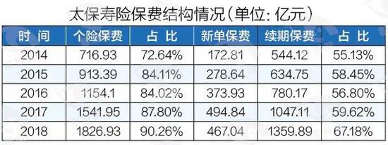 至2018年,太保寿险续期保费占比达67%,续期拉动效应明显。太保寿险也成为寿险行业转型发展的标杆式存在。