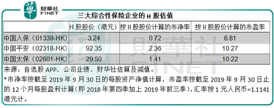 财华社认为这一方面是与中国人保的财险业务占比较大有关,而我们前文已经提到财险业务由于成本较高久期较短,利润也较为微薄;另外一个原因则与其较低的资产负债率有关,也就是说杠杆低于同行,即权益占比较高,截至2019年9月30日,中国人保的资产负债率为79.08%,中国平安为89.79%,中国太保为88.29%,或反映中国人保的资产负债状况较同行稳健。