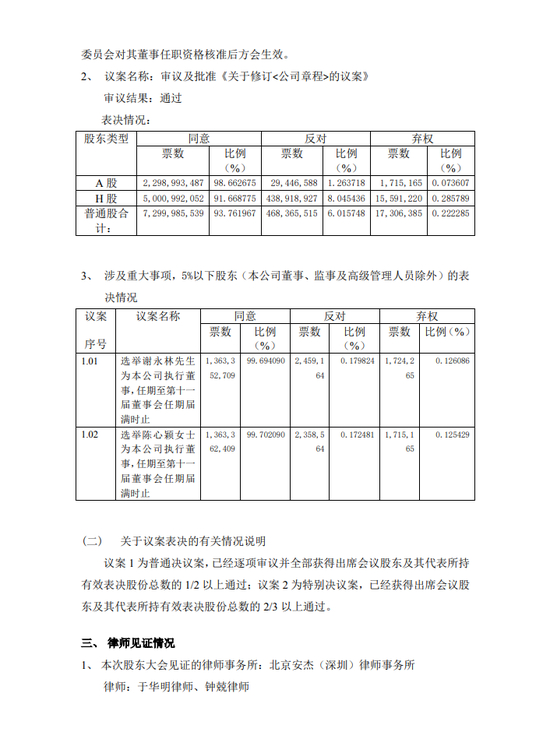 中国平安:谢永林等执行董事决议案已获股东会通过
