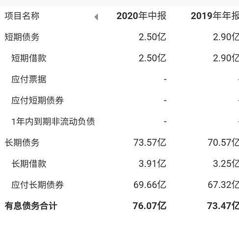 财联社记者查阅发现,西水股份上半年有息债务合计76.07亿元,其中,长期债务为73.57亿元,而此前根据披露的2020年上半年中报显示,西水股份营收28.13亿元,归母净利润-270.89亿元,扣非净利润亏损271.08亿元。