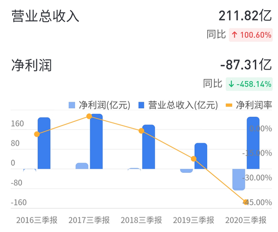 自2020年7月17日,天安财险被银保监会接管之后,西水股份则表态不再拥有对天安财险控制权,不再进行财务上的合并报表,但这似乎并没有让西水股份的财务报表好看多少。根据西水股份三季报,其前三季度实现营业总收入211.8亿,同比增长100.6%;实现归母净利润-87.3亿,上年同期为-15.6亿元,亏损幅度扩大,净利润跌至近五年来新低。
