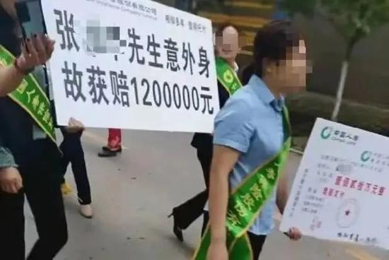 紧接着网络上疯传中国人寿重庆永川支公司的一段视频,视频里面中国人寿有关人员拉着横幅,浩浩荡荡游街宣传“xxx客户意外身亡获赔120万”,把客户的丧事当作喜事在做。