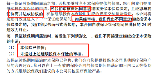 续保必须经过审核同意,如果不同意,则不再接受续保。