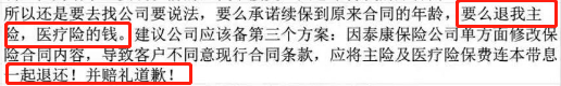 因为泰康的健康尊享,此前一直捆绑主险销售,如今单方面改变销售承诺,有代理人就表示要连本带息退还投保费用,赔礼道歉。