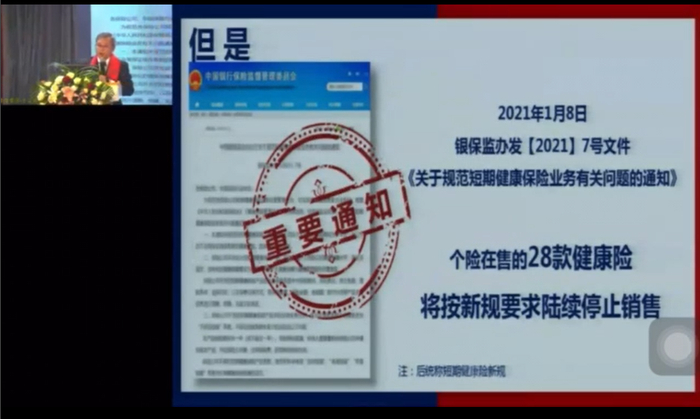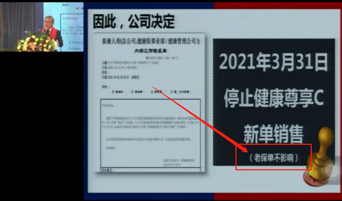 也说到了银保监发布的通知,以及泰康决定2021年3月31日要停止健康尊享C新单销售。