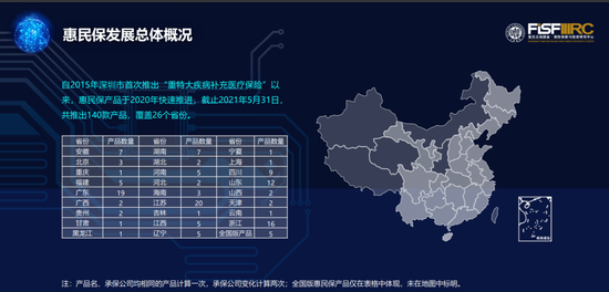 《图谱》显示,自2015年深圳市首次推出“重特大疾病补充医疗保险”以来,惠民保产品于2020年快速推进,截至2021年5月31日,我国共推出140款产品,覆盖26个省份。