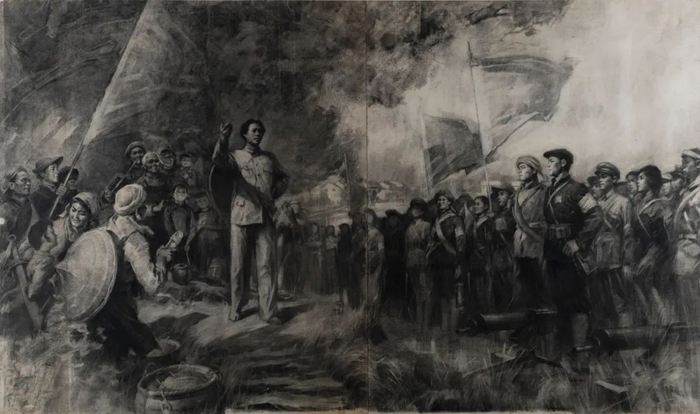 1977年8月16日至31日,庆祝中国人民解放军建军五十周年美术作品展览在中国美术馆举办。这次《建军五十周年美展》中涌现了一大批军事题材,特别是革命战争历史题材的好作品,展示了人民解放军的光辉战斗历程。