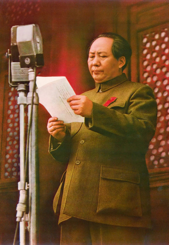 1949年10月1日下午,首都北京30万军民在天安门广场隆重举行开国大典。毛泽东庄严宣告:“中华人民共和国中央人民政府今天成立了!” 第一面五星红旗在天安门广场上冉冉升起。与此同时,代表参加中国人民政治协商会议第一届全体会议的共54个单位的54门礼炮齐鸣28响,象征党领导人民奋斗28年的历程。