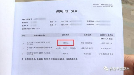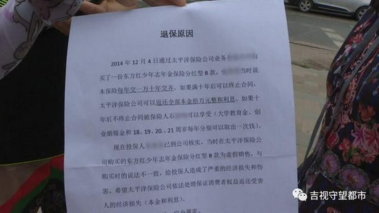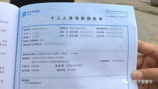 原标题:长春男子买太平洋保险公司的分红保险 7年后发现合同和业务员介绍的不一样