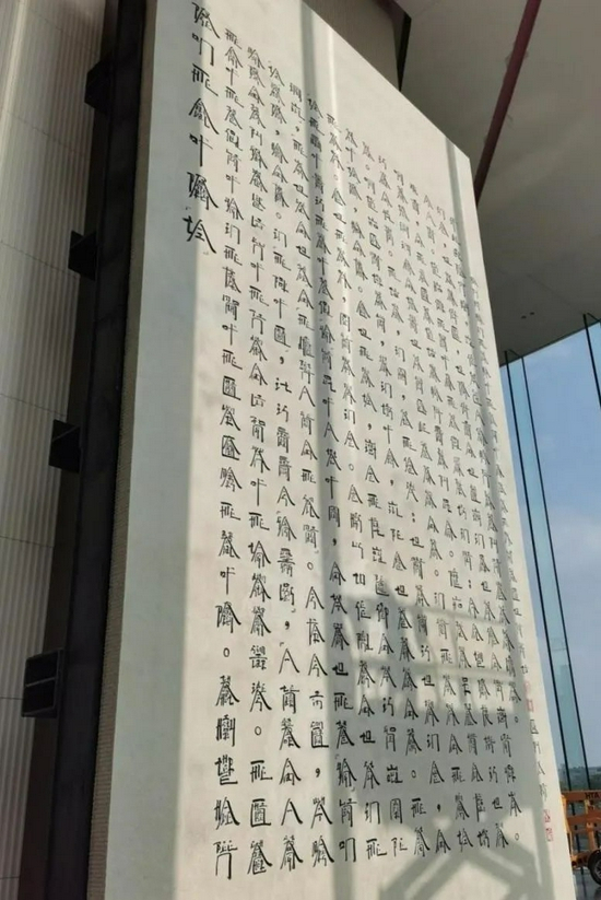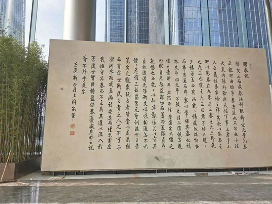 当你进入大厦,便可看到两块巨型西班牙莱姆石,其中一块刻着乾隆《开泰说》原文和《新开泰说创作记》;另一块则刻有中国著名当代艺术家徐冰先生创作的“方块英文书法”《开泰说》。泰康保险集团董事长陈东升特邀国际知名当代艺术家徐冰,以当代艺术重书经典,横贯古今,纵横中西,盼望国泰民康、人民幸福。