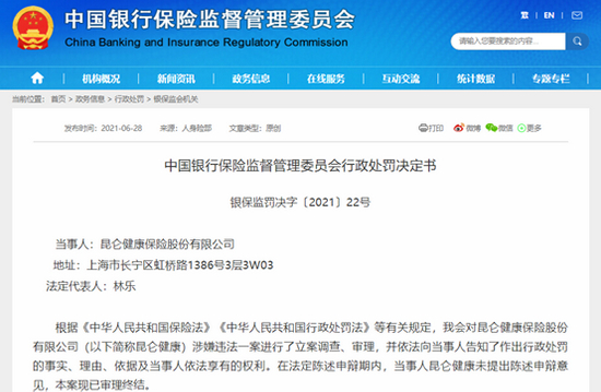 6月28日,银保监会行政处罚决定书显示,经查昆仑健康保险方面,两位临时负责人均存在超期服役。
