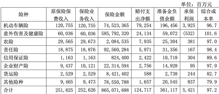 除了改革组织架构,在业务结构上,人保财险亦进一步调整。从上半年情况来看,其拓展非车险业务发展新空间,实现原保险保费收入2518.25亿元,同比增长2.5%;承保利润54.06亿元,同比增长1.3%;综合成本率97.2%,同比下降0.1个百分点。