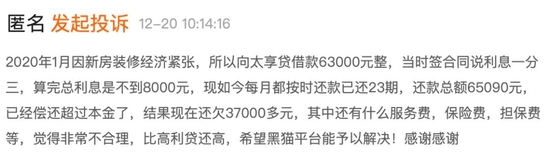 *太享贷的部分投诉情况,截图自黑猫投诉