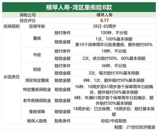 一、横琴人寿-粤港澳大湾区重疾险(B款)