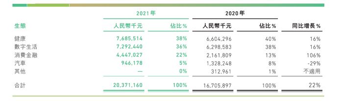 总体来看,健康生态业务收入占总保费收入的38%,依然是保险业务的中流砥柱,消费金融生态保费收入实现106%的增长,成为保费收入增长最快的业务部门,汽车生态则由于车险综合改革等原因保费收入同比大幅下降29%。