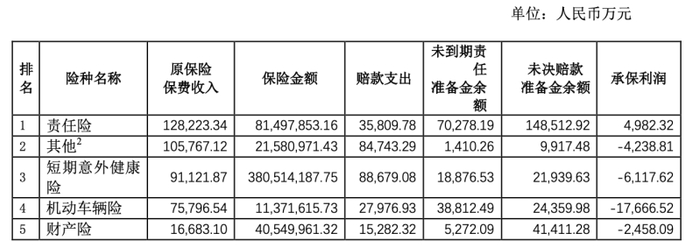 2021年,京东安联原保费收入前五位的商业险险种包括责任险、退货运费险等其他、短期意外健康险、机动车辆险、财产险,赔款支出分别为3.5亿元、8.4亿元、8.8亿元、2.7亿元后1.5亿元。