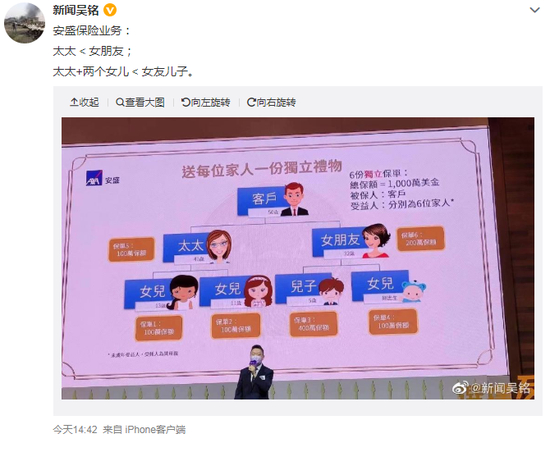 在公开鼓励客户为私生子投保,且在“妻子<女朋友,女儿<儿子”的价值排序建议下,划开的这道口子将给社会的风序良俗带来什么影响,我们不得而知。