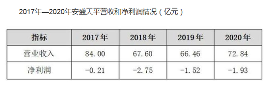 该公司年报显示,2017 年至 2020 年,安盛天平已经连续四年出现亏损,累计亏损超6亿元。