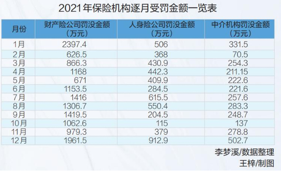 统计数据显示,2021年,银保监会及其派出机构针对保险机构开出罚单2104张,罚没金额2.95亿元,较2020年分别增长22.7%和25%。