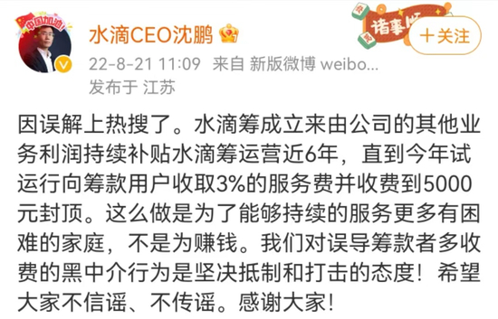 原标题:最高达70%?水滴筹再陷中介抽成风波: CEO沈鹏亲自下场回应,平台费率3.6%;累计募捐超500亿元,是公益还是生意?