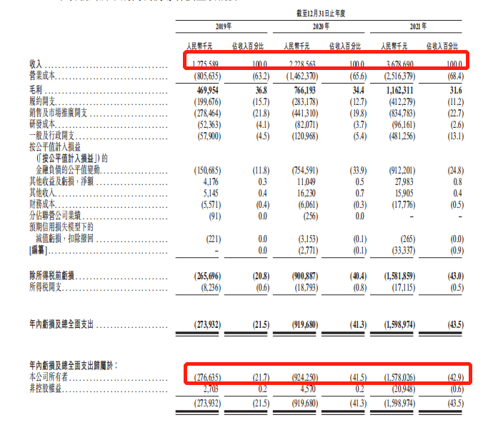 然而,叮当健康的财务数据并不漂亮。2019年、2020年以及2021年三个财年,叮当健康的营收分别为12.76亿、22.29亿和36.79亿元人民币,相应的净亏损分别为2.74亿、9.20亿和15.99亿元人民币。换言之,三年累计亏损约28亿元。