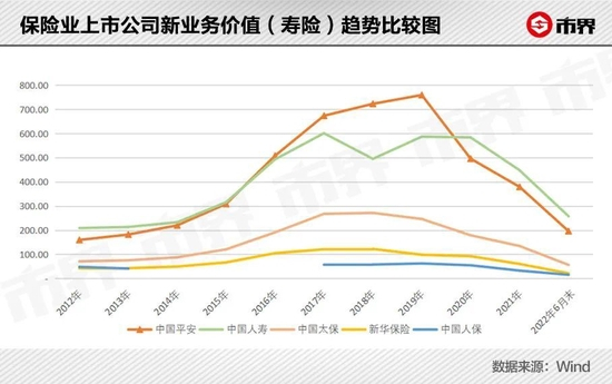 2019年开始,平安成为五家险企中最早有寿险改革“大动作”的,直观数据来看,其个险代理人在年内缩减200多万人,2020年和2021年也均有减少,其团队优化时间和规模领先于另外四家险企,这让2016年至2019年间在新业务价值指标上领先的平安,从 2020年开始更早出现回落。