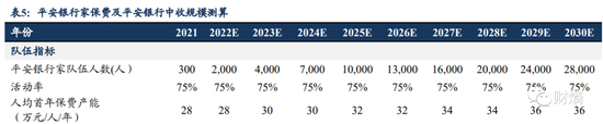 根据中国平安2022年三季度财报,加入该团队的人数已经接近1100人。按照平安此前的预测,到年底,平安新银保团队人数或增至2000人。东吴证券甚至预计2025年团队增加至10000人,2030年增加至28000人。