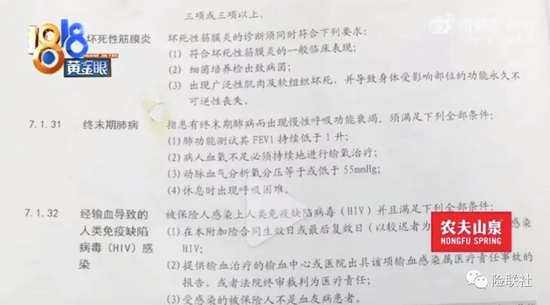 在合同适用的重大疾病列表里,有一项终末期肺病,指患有终末期肺病而出现慢性呼吸功能衰竭,须满足下列全部条件:1.肺功能测试其FEV1持续低于1升;2.病人血氧不足必须持续地进行输氧治疗;3.动脉血气分析氧分压等于或低于55mmHg;4.休息时出现呼吸困难。