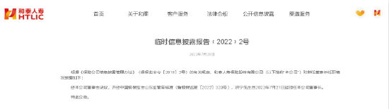 7月25日,和泰人寿发布公告称,经过公司董事会决议,并经银保监会山东监管局核准,洪宁自2022年7月21日起担任本公司董事长。