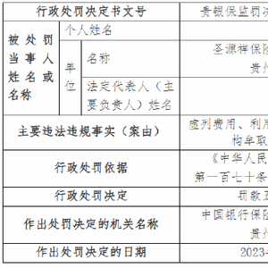 因虚列费用等 圣源祥保险代理贵州分公司被罚53万元