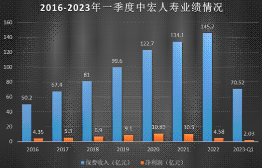 今年一季度有所好转,实现保险业务收入70.52亿元,较2022年同期增长34.5%;实现净利润2.03亿元,较2022年同期增长31.82%。但今年中宏人寿业绩是否能峰回路转,净利润实现增长,还不得而知。