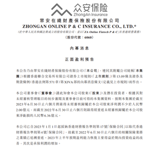 众安在线预计上半年利润最少2亿元 一季度尚亏损3.85亿