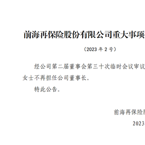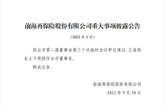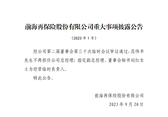 前海再保险一二把手突然同日卸任,公司回应:王焱侠到龄退休,暂不清楚范伟书下一站去向