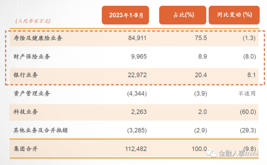 各业务板块,保险业务累计实现归母营运利润948.76亿元,占比84.3%,其中,身处改革之中的寿险及健康险业务累计归母营运利润849.11亿元,占集团归母营运利润的75.5%。