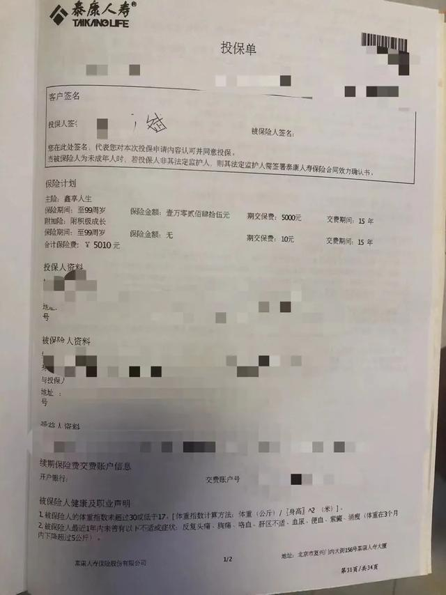 近日,有用户向《中国科技投资》记者反映称,泰康人寿保险有限责任公司(以下简称“泰康人寿”)保险代理人通过返佣吸引其进行投保,并涉嫌存在虚假宣传欺骗投保人的行为。另有用户向记者反映称,其在泰康人寿保险代理人的推介下为儿子购买一款年金险。用户翻阅保险合同发现,该保险并非如保险代理人承诺所称缴费满15年后可取出全部本金及利息,而保单上的签名亦并非其本人签字。