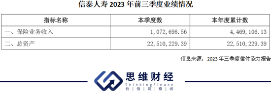 信泰人寿2023年三季度偿付能力报告显示,去年前三季度公司实现营业收入446.91亿元,公司并未公布净利润情况。