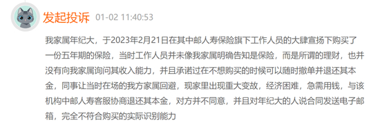 在黑猫投诉平台,不少人投诉,中邮人寿旗下的工作人员并未根据客户的适配性售卖保险产品,存在诱导欺骗老年客户购买保险,客户要求退保时不退或者少退本金,中招的不少是农村老人。