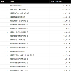 今年500家上榜的中国公司在2023年的总营业收入达到14.6万亿美元,和上年上榜公司相比,下降约3%;净利润达到7064亿美元,较上年下降约1.5%。今年上榜公司的年营收门槛约为37.4亿美元,较去年的门槛提升约9%。按美元计算,2023年中国的GDP总量达到17.89万亿美元,今年榜单中500家公司的收入总和超过中国当年GDP的81%。