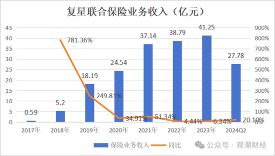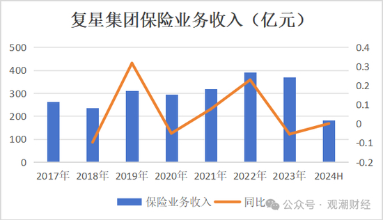 从保险业务收入来看,复星集团的保险业务近几年来呈现出波动上升态势。今年上半年,其保险业务收入为182.12亿元,较去年同期基本持平,实现微幅增长,同比增幅为0.1%。