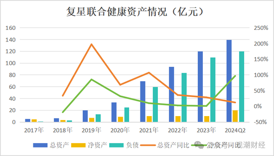 从资产端来看,成立至今复星联合的总资产持续上涨,今年二季度末,该公司实现139.6亿元的总资产,同比去年二季度末上涨11.72%,近八年“复联”总资产增速最高的是2019年,相较2018年同比增长196.87%。
