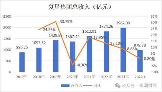 据观潮财经统计,近年来复星集团总收入整体呈稳步上升趋势,今年上半年集团收入为978.38亿元,较去年同期增加7.73亿元,同比增长0.8%。