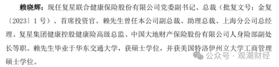 复星保险板块高层联动调整。