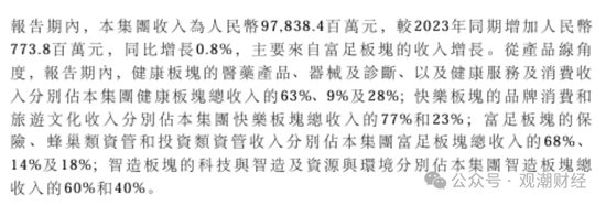 集团在半年报中表示,总收入增长主要来自“富足”板块的收入增长,其中“富足”板块的保险收入占该板块收入的68%。