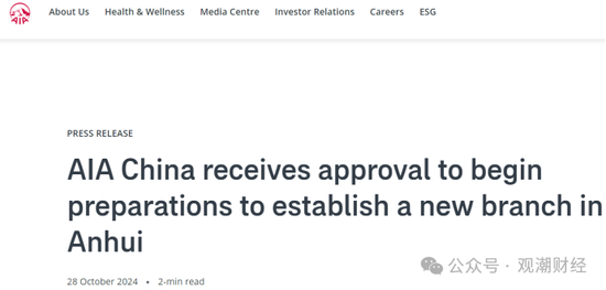 10月28日,友邦保险集团宣布友邦人寿已获得监管批复,将分别于安徽省、山东省筹建分公司,两家分公司将于最终监管批准后开始营运。
